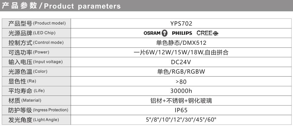 灯具材质:压铸铝灯体, 304不锈钢镜光孔片、高透光性钢化玻璃。