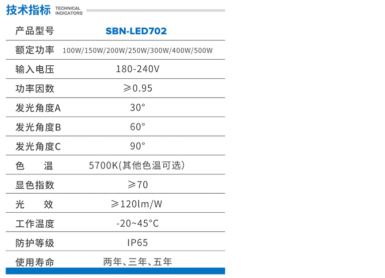 模组化设计,三种配光角度可选45度、60度、90度; 工程学设计结构,牢固可靠,结构简单,可任意拼接; 大功率,高亮度,光色柔和; 纯铝型材外壳,表面3道抗腐蚀处理; 支架可自由调节角度,方便安装。