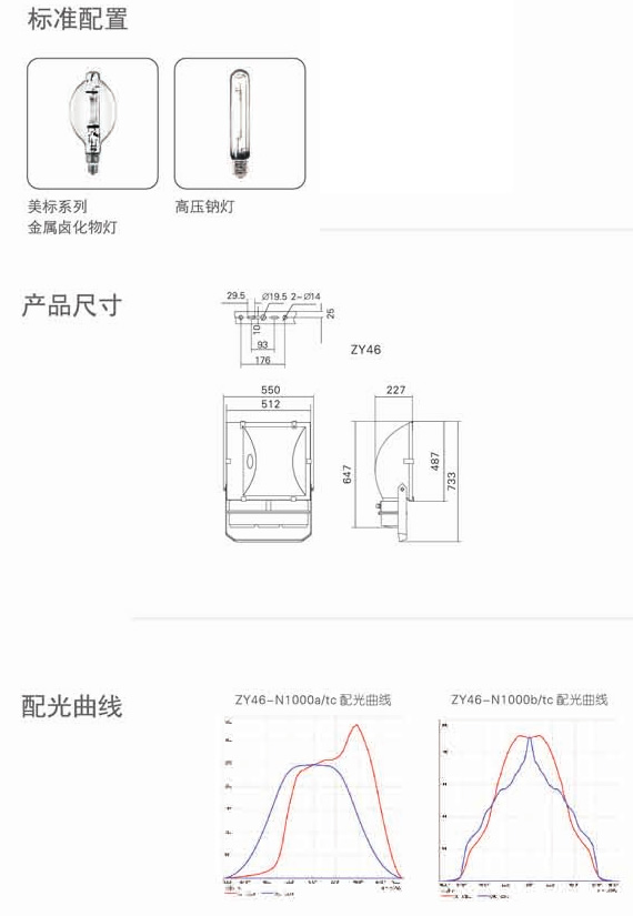 ●高压压铸铝成型外壳,外壳静电喷塑处理高纯铝反射器,备有对称型(b)或非对成型(a) 配光系统