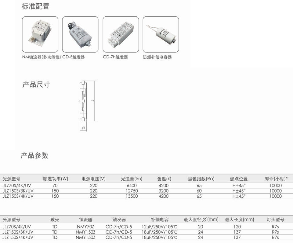 ●采用亚明公司传统制造工艺,具有高效截紫外线功能。采用双端形式,使光源的结构更紧凑,体积更小巧