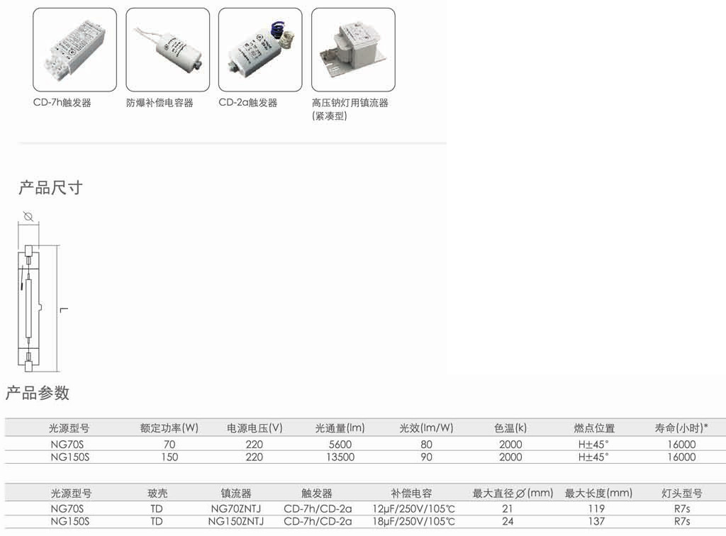 金卤灯/钠灯灯具配件