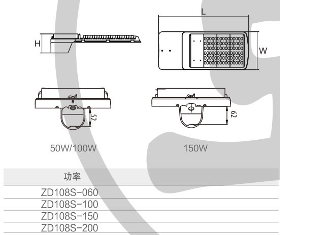 压铸铝壳体,出光面为PC+玻璃;封闭式电气箱,安装套筒角度不可调节;可选配SPD;有防坠链。