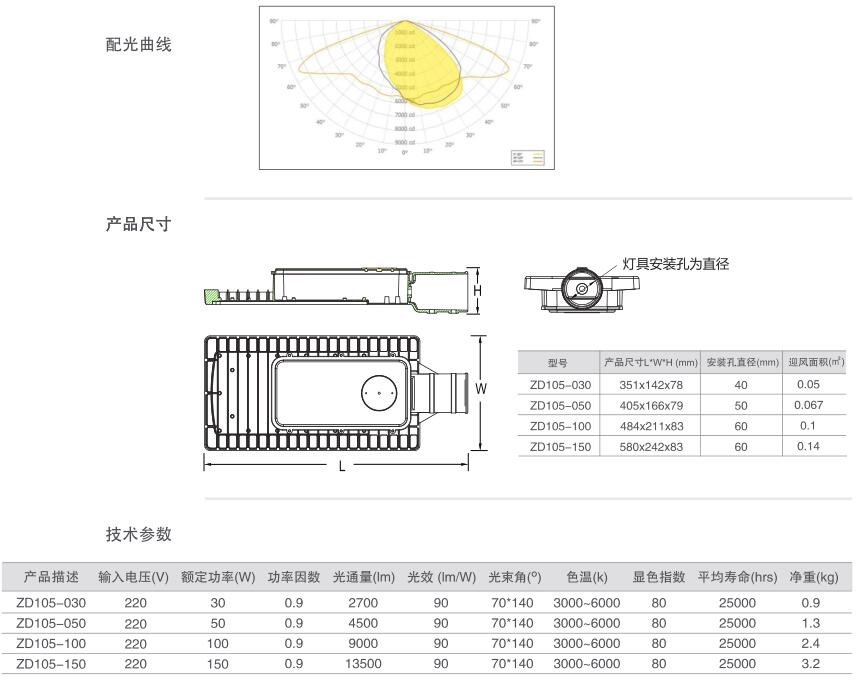 ●高纯度压铸铝外壳,内部L ED颗粒与外壳紧贴;