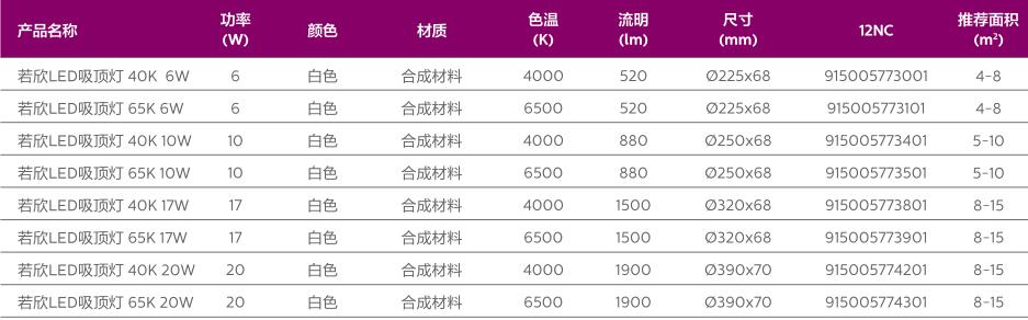 ●两种色温,四种尺寸,满足全屋基础照明需求