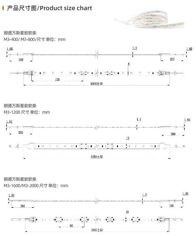 ●双端30cm出线设计,皆可连接电源,有效减少的裁剪后的损耗