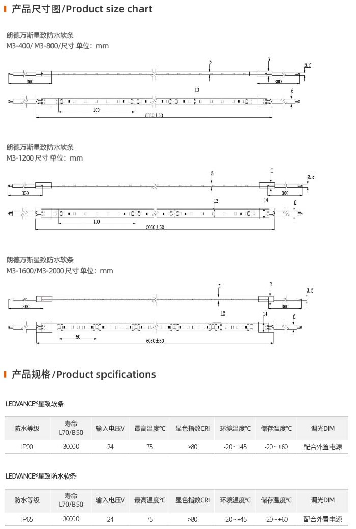 ●星致防水软条,采用高品质硅胶材料, IP65防水