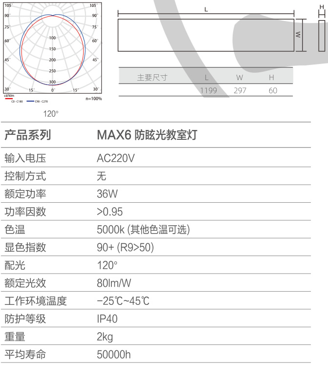 ●采用新科技的多层防眩光面板,严格控制眩光,可达到UGR< 16;