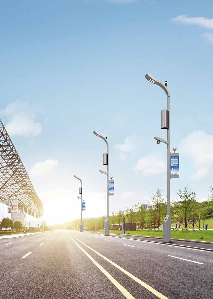 ●光讯智慧路灯外观具有现代城市=风格,将城市管理讯息通过照明灯杆进行整合。