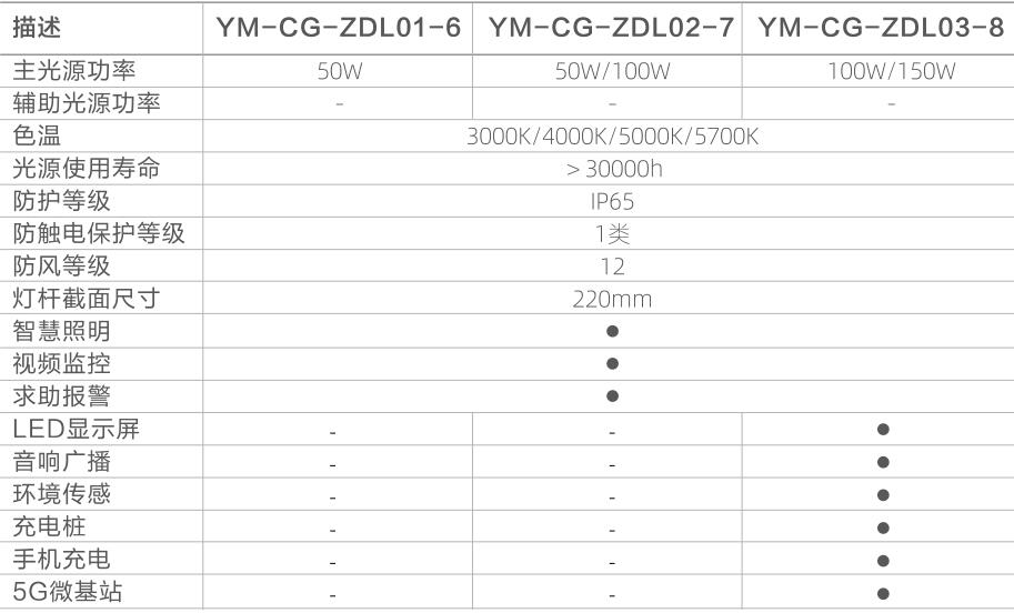 ●使用LED光源,防眩光处理; 压铸铝灯体;高度自由调节6m、7m、8m; 功能扩展:监控、装饰灯带、广告屏、音箱、充电桩、安全报警系统,自由选配;灯杆管径220mm;外部落实均为不锈钢材质; .