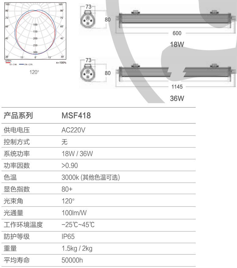 整灯主体采用铝挤出的加工方式,造型结合了铝材元素,使得整体更为坚固和耐用;高PF,低THD电源,符合国标的EMC要求,浪涌抗扰度设计,满足各类恶劣的工业应用电池环境;50000小时的寿命保证(使用国内 知名公司芯片)。