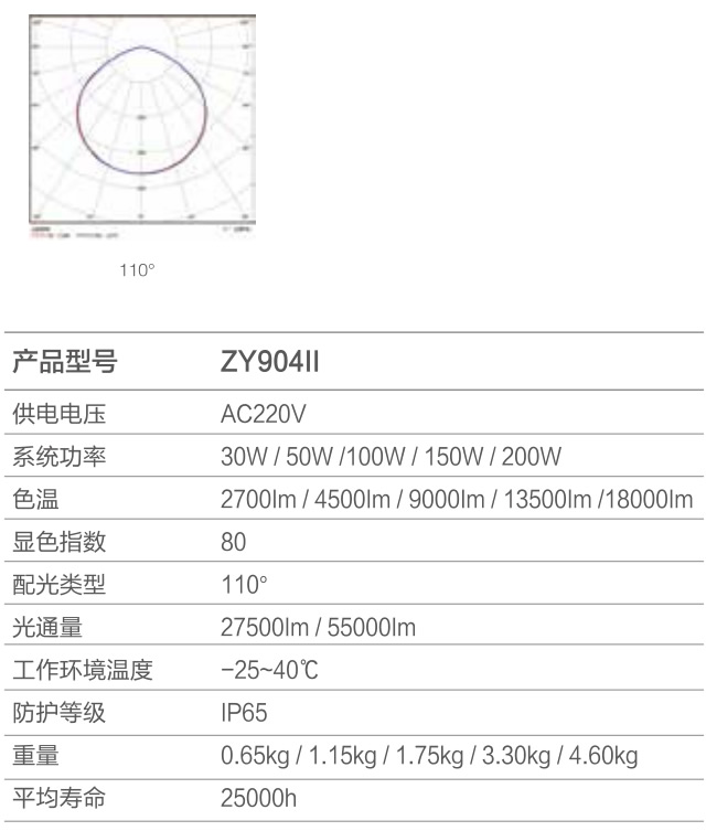 铝压铸外壳,表面抗腐蚀静电涂层;材料厚实,结构合理,散热快;钢化玻璃面罩,抗撞强度高; DOB驱动方案,寿命更长;光效高,光色-致性好;绝缘等级Class |;使用环境温度-25°C ~40°C;