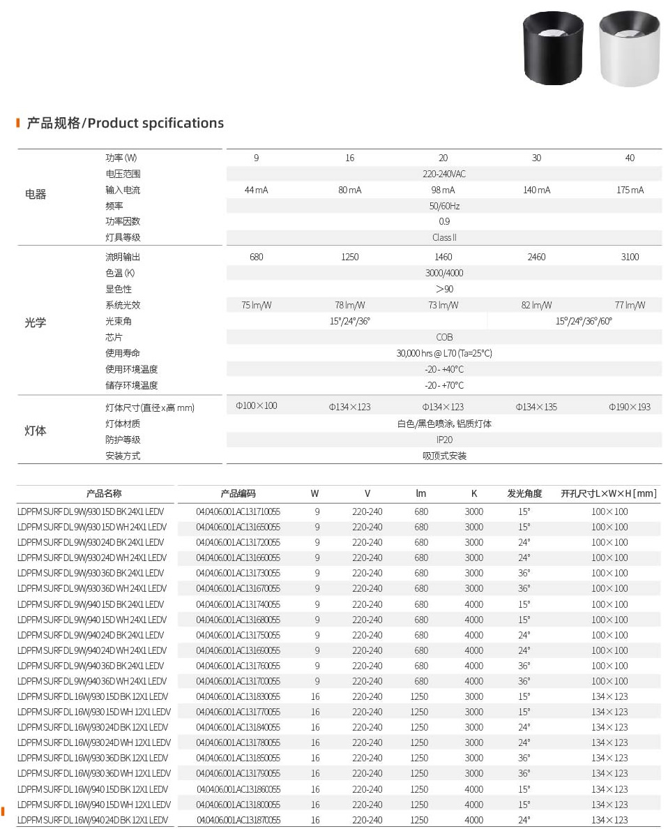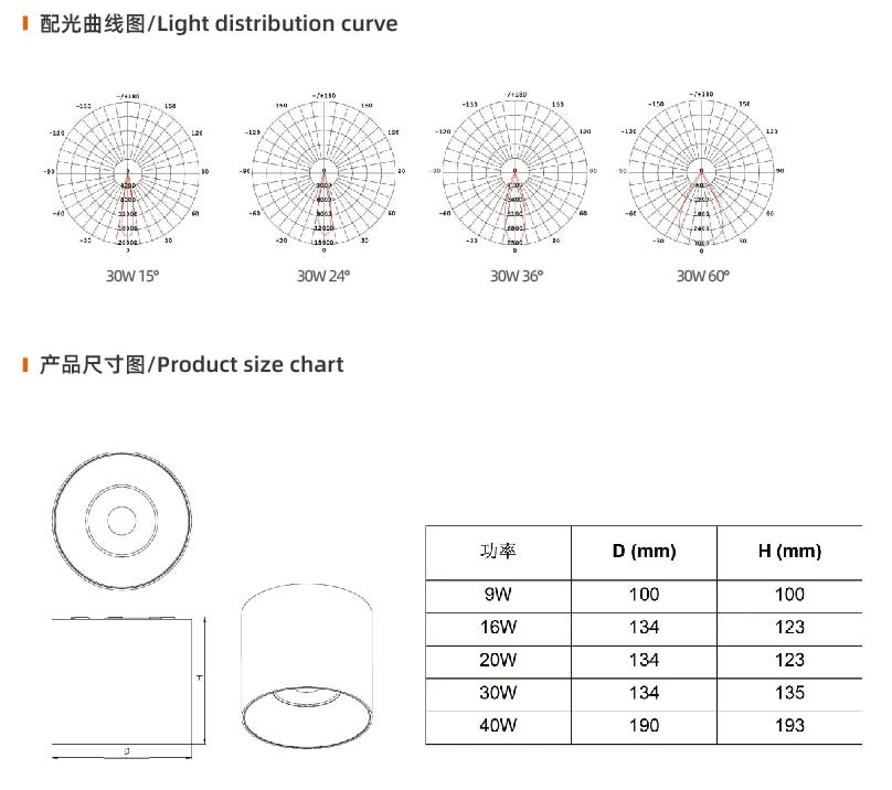 ●4种角度:15°.24°. 36°. 60°(30W/40W)