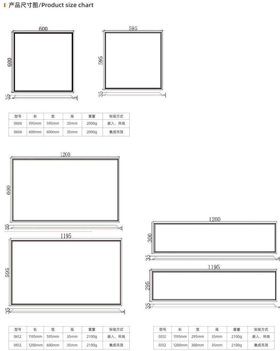 ●三种安装方式:嵌入式、吊线装、集成吊顶