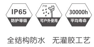 防水:全结构防水技术,采用特殊的高弹力硅胶密封材质,可确保防水等级在IP65以上。