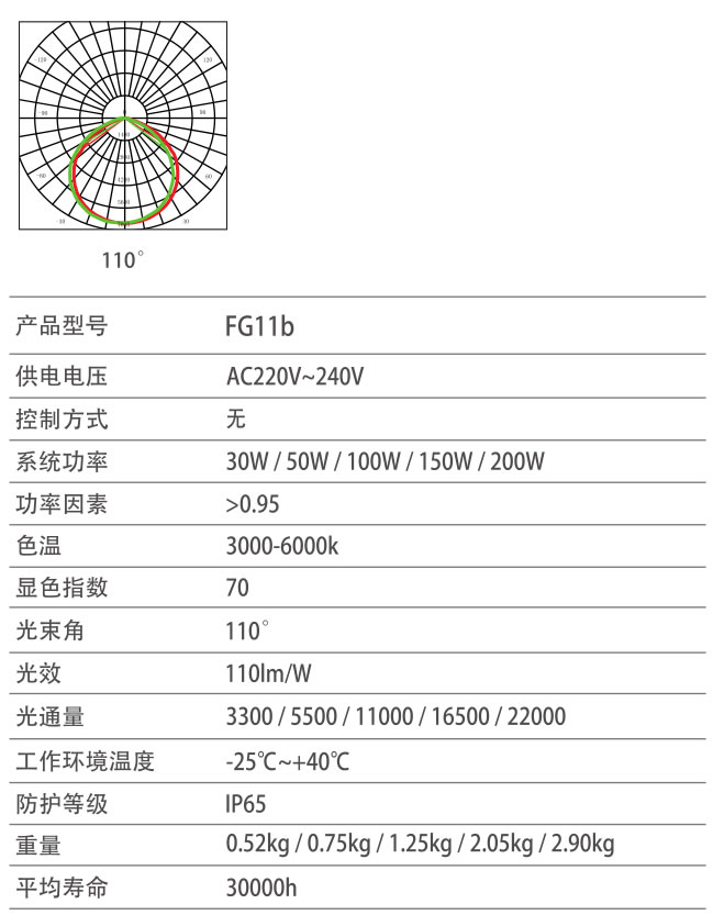 采用品牌高光效灯珠,整灯110Im光效输出,光色柔和,一致性好,节能效果更好。