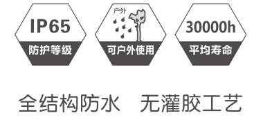 防水:全结构防水技术,采用特殊的高弹力硅胶密封材质,可确保防水等级在IP65以上。