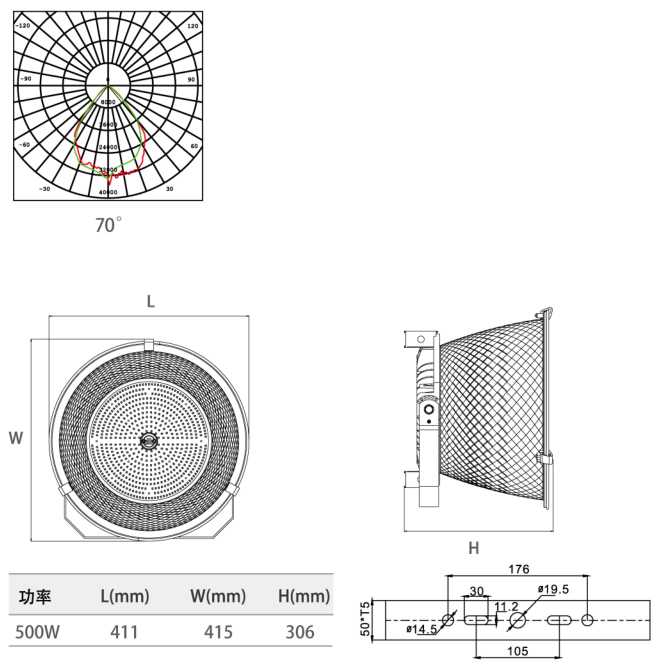 ●整灯550001m高光通量输出,专业的塔吊照射角度, 更好的应用于建筑照明场景