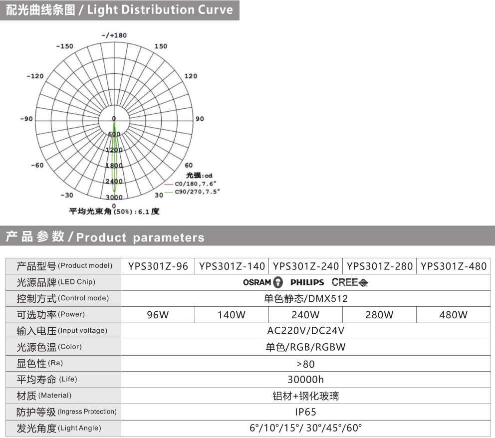 配光: 1、透镜采用日本帝人光学级PC原料,高精度的模具加工工艺,光斑均匀度>0.92 ,眩光值UGR<8 ,光斑完美,透光率同比高10%以上。. 2、造型呈格纹的反光杯,深谙弧面多次反射的原理,光斑漂亮且投光率达93%以上。