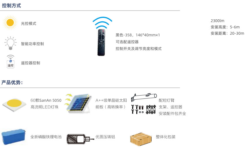 产品无需辅线和市电,安装方便,节能环保,寿命长。