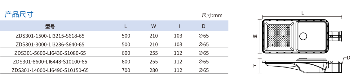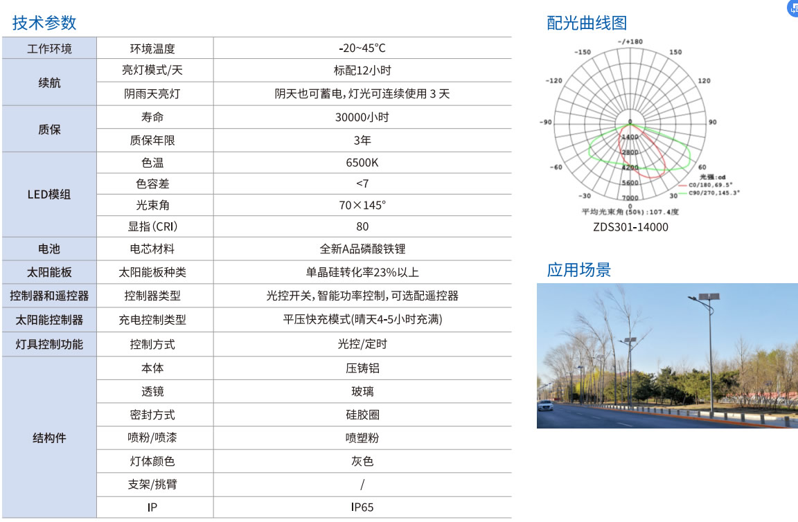 安装时只需将灯具固定在灯柱上,让发光面精准朝向待照明的路面,同时将太阳能板对准太阳即可。五种流明选项-1500、3000、5600、8600、14000流明